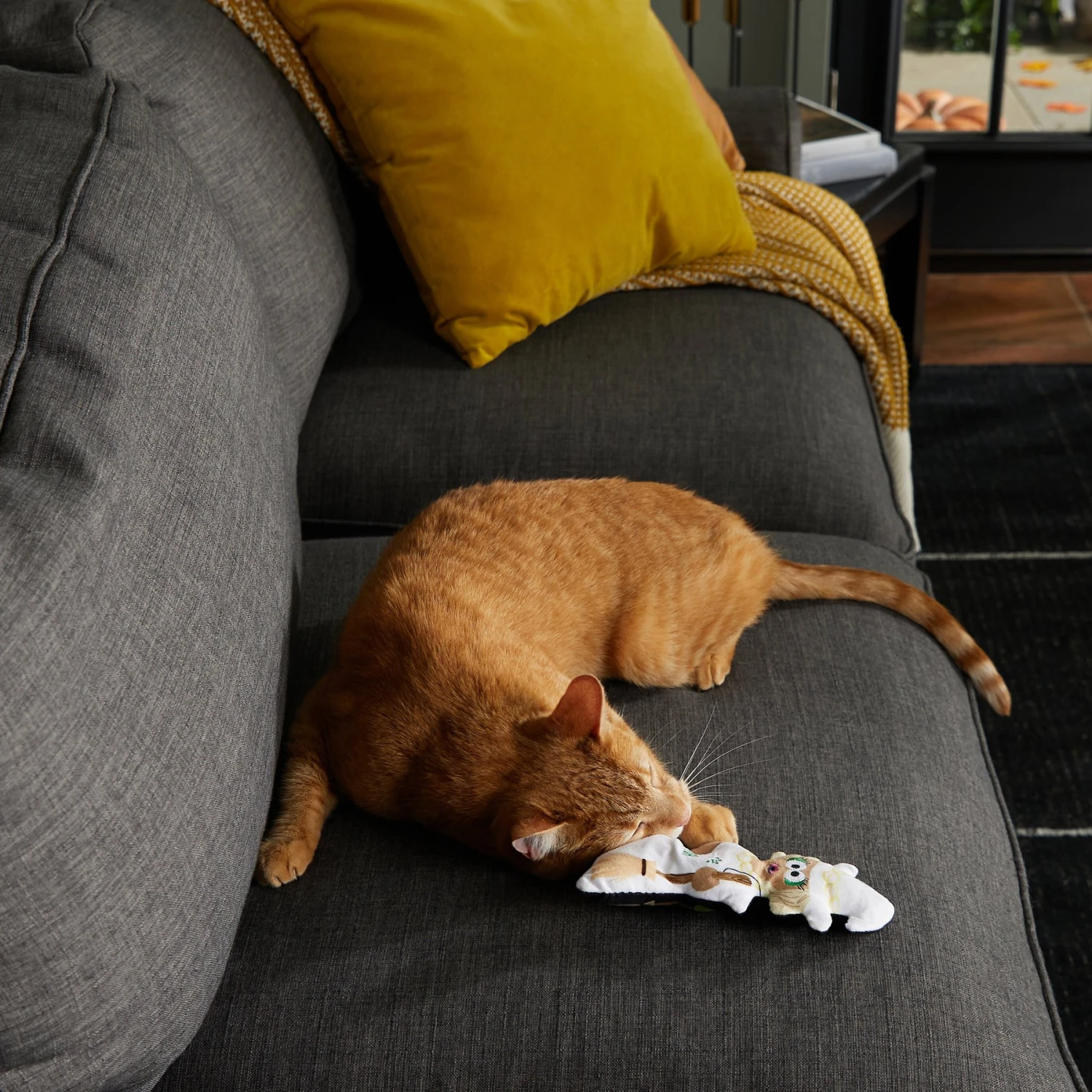 If your energetic cat likes to wrestle and bunny kick, this reversible plush is the purr-fect addition to their toy box. There’s no better way for a Halloween-loving kitty to get their kicks this year! It’s got two sides to choose from—one side is a good witch, the other is a bad witch. So, witch will it be? Whichever side your kitty chooses, this kicker is covered in soft fabric and infused with exciting catnip, so your cat won’t be able to resist a spooktacular play session this Halloween.