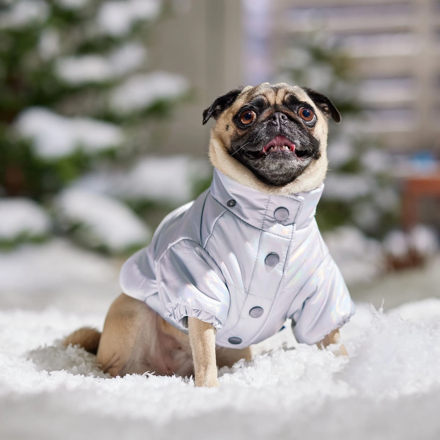 - This premium quilted puffer combines several snug features with a shimmery, iridescent-silver undertone shell that’ll make your pet shine.