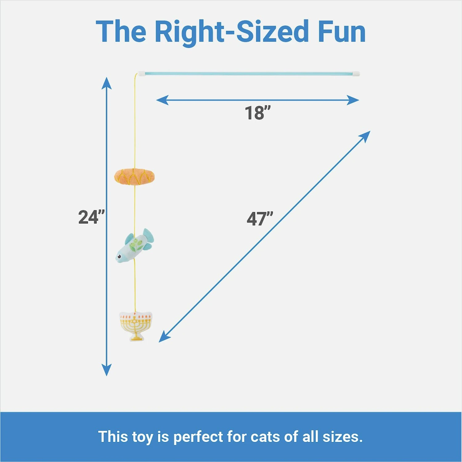 Time to get your cat’s body movin’ for the winter season—or any time of the year, really. This set comes with two wands that are Hanukkah themed and include a catnip-packed fish, bread, coin, dreidel and menorah. This set gets even better with curly ribbons and crinkle paper that will surely level up play time. Wave, bounce and twirl the wand to your kitty’s delight—engaging them in an evening full of winter activities! Your cat won’t help but to want to play every single day for the holidays and beyond.