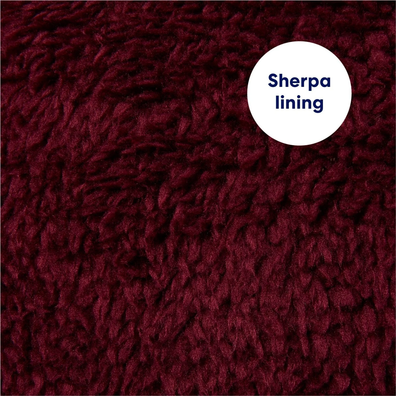- The jewel-toned plaid, solid sherpa lining, and faux-pocket accents at the front combine to offer a healthy dose of warmth and fashionable flare.