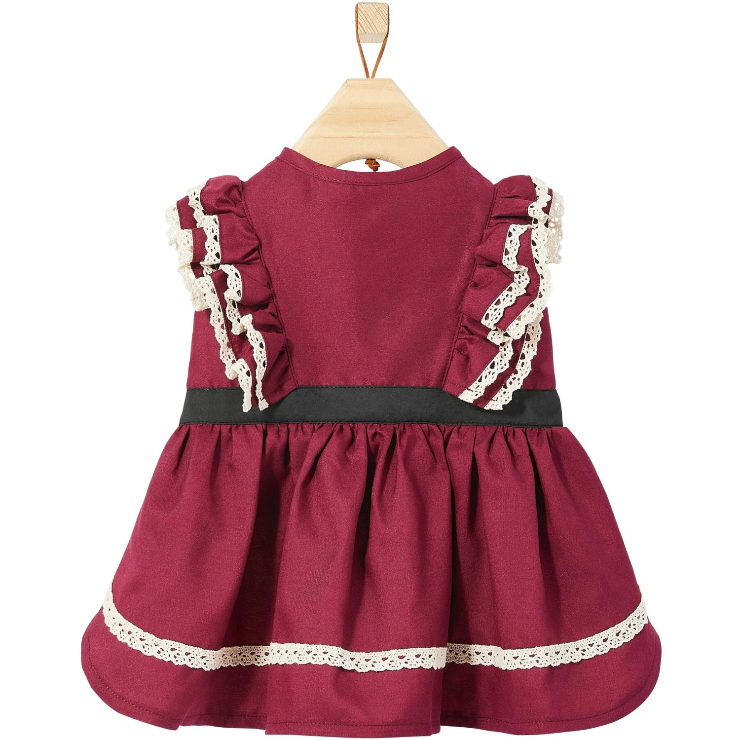 - Ruffled sleeves and lace-accented skirt are perfect for that upcoming playdate or mocktail party.