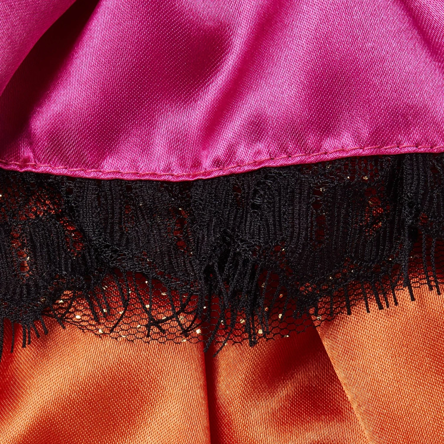 - This Carnivale-inspired dress features multi-colored stripes, black lace detailing, and a matching flower headpiece.