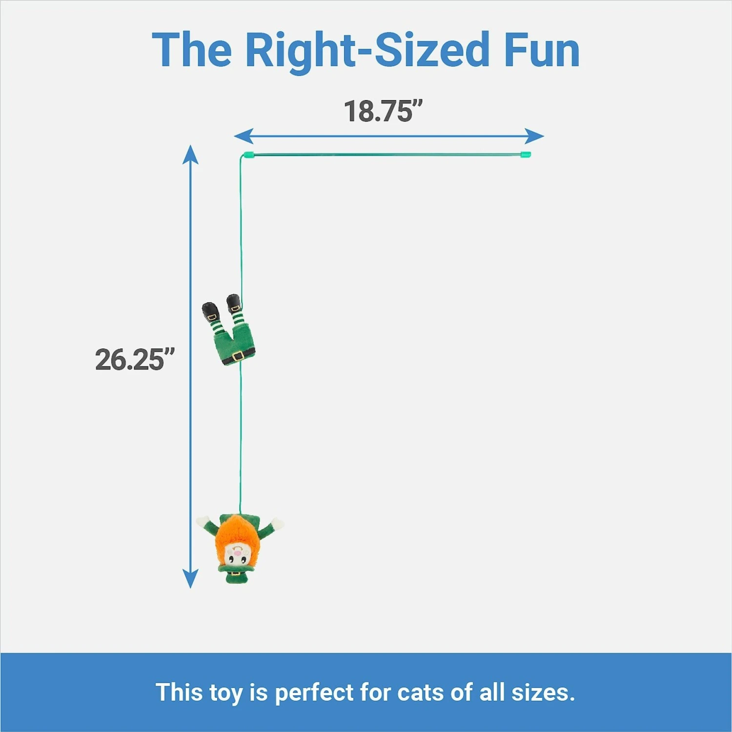 - Great for different kinds of play, to keep your kitty leaping, bouncing and batting at the leprechaun.